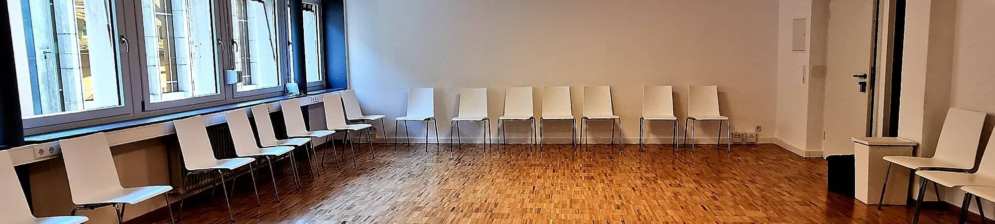 Unser Kurs- und Seminarraum in der Salzstraße 9 im Zentrum Freiburgs ist der ideale Ort für Vorträge, Sportgruppen oder andere Gruppenveranstaltungen.
